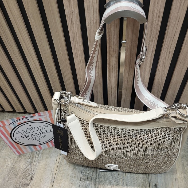 Sac à main en cuir et raphia Caramelo